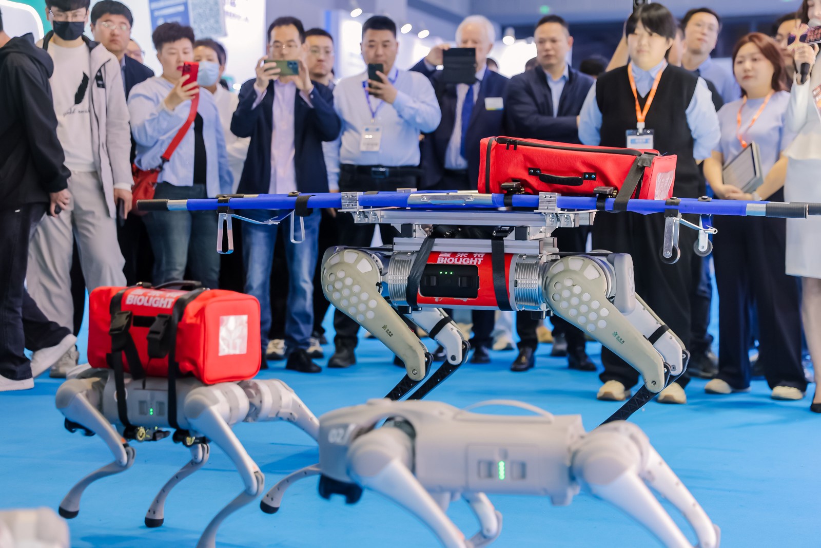 365英国首日表现印证了这一趋势:四足机器人急救解决方案作为全场焦点,搭载转运监护仪、心电图机等核心设备,以展现了“设备随行、救治前置”的急救新范式。