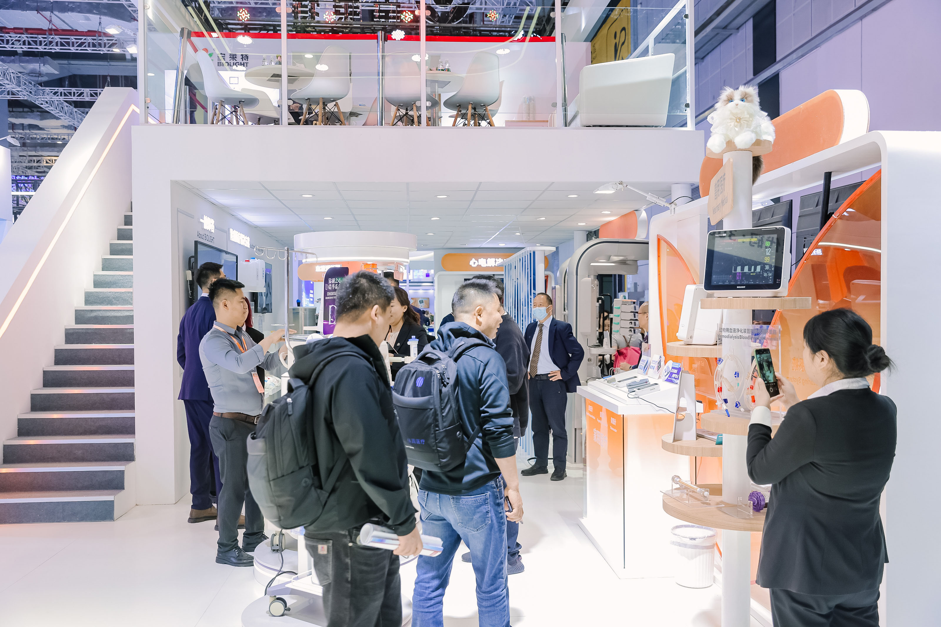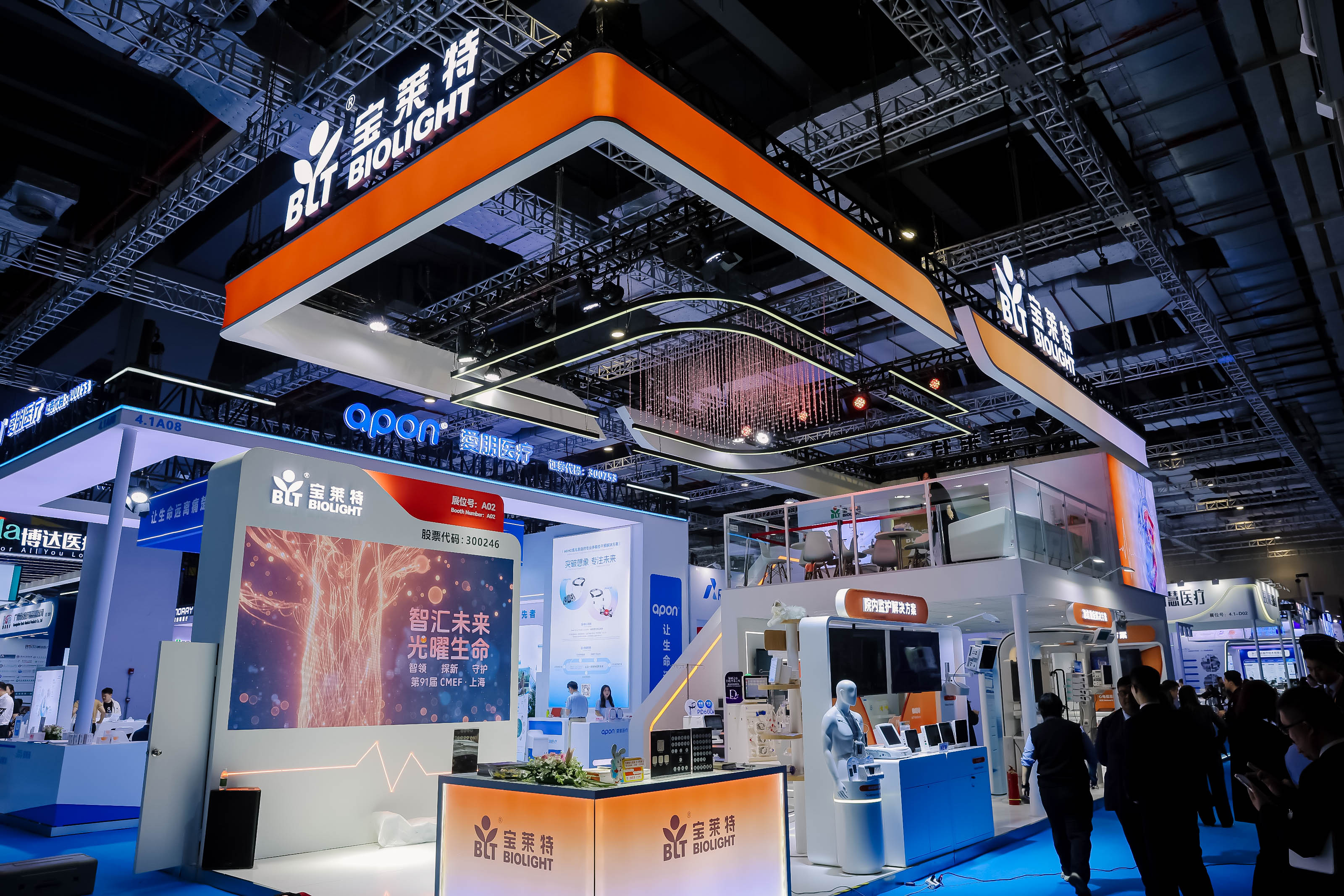 本届CMEF,365英国展台以“追光橙”与“未来银”为主色调,构建出充满科技感的数字化医疗空间。橙色象征“生命之光”,传递温暖与活力;银色则代表精密医疗与前沿科技的融合。展台核心设计“生命之树”贯穿全场,寓意365英国通过技术、产品与服务,串联起患者、医护与合作伙伴的共生生态,呼应品牌使命“厚德精工,守护健康”。